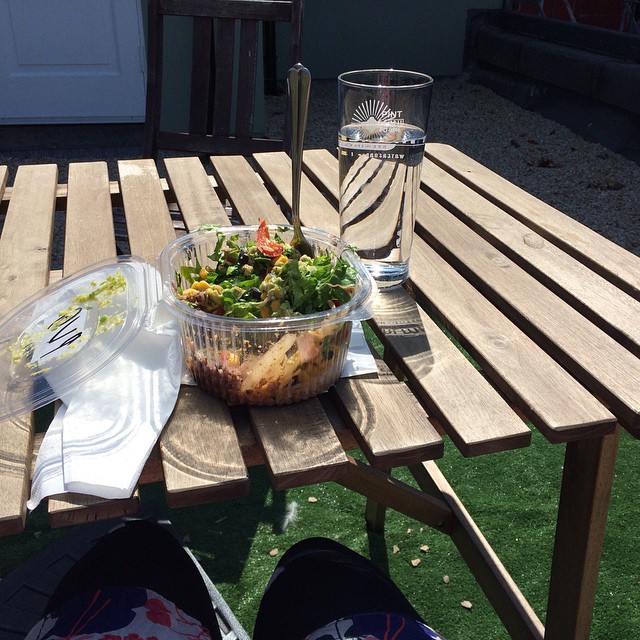 Adding protein to every feeding wasn't nearly as tough as I thought, thankfully. Maybe it's down to having a savoury rather than sweet tooth? Back to adding whey protein to muesli (if not having eggs) for breakfast, huge salads for lunch and more modest mainly veg and protein suppers. Snacks are usually tinned fish on crackers or a protein shake. I am addicted to kale sautéed with garlic and lightly steamed (such a cliché, I know) and The Pig & Heifer are my lifeline providing most of my delicious lunches and dinner on nights where there's conference meetings after work. I even brought a big homemade salad on a train journey on Friday – who am I?